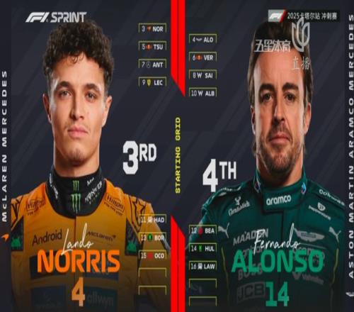 2025赛季F1卡塔尔大奖赛迎来了冲刺赛的争夺,最终,皮亚斯特里第一个冲过终点线获得冲刺赛冠军!拉塞尔第二,诺里斯第三,维斯塔潘第四。