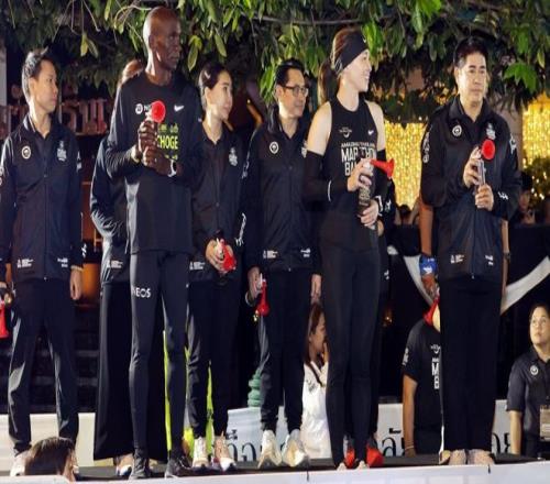 当天在起跑线上,包括泰国副总理兼农业部长塔玛纳特·普罗姆帕奥(Thammanat Prompao)、旅游和体育部长阿塔空·西里拉塔亚空(Atthakorn Sirilattayakorn)、泰国旅游局局长塔帕尼·基亚特派汶(Thapanee Kiatphaiboon)和曼谷市长查查特·西蒂蓬特(Chadchart Sittipunt)在内的政府官员在4.8万名观众的陪伴下,欢呼迎接泰国王后。苏提达身着运动服,素颜现身,随后按响了全程马拉松(42.195公里)的起跑号角。