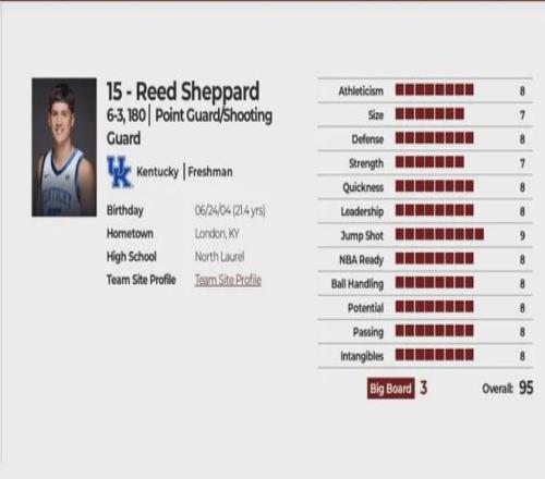 谢泼德通过大一赛季的出色表现,选秀声望迅速提升,所以真正具有参考价值的还是选秀前的球探报告,接着我就放上谢泼德2024年3月28日在NBA draft网站的最后一份球探报告做参考。
