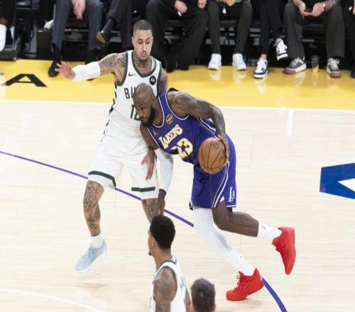第二节双方轮换阵容阶段,两队还是难解难分,双方互相罚球以后,雄鹿反超比分。斯玛特连中三分以后,波蒂斯内线得分,哈里斯三分再中,44-39湖人暂停。但暂停以后,雄鹿还在进三分,东契奇2+1止血。不过湖人的防守是真的差,雄鹿一度领先到了12分。老詹三分止血以后,又反击一条龙暴扣。半场结束湖人52-61落后9分。