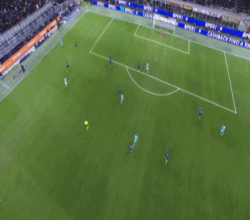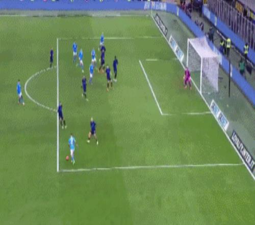 第42分钟,迪马尔科左路传中,泽林斯基抽射打在队友劳塔罗身上