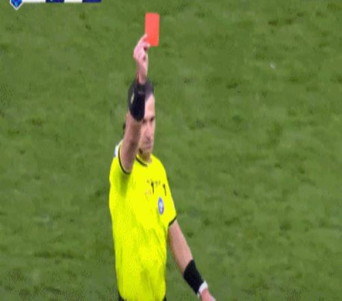 第70分钟,姆希塔良禁区倒地造点,孔蒂不满判罚被罚下